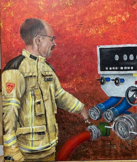 Opdracht van het korps waarvan deze brandweerman na jaren afscheid nam.