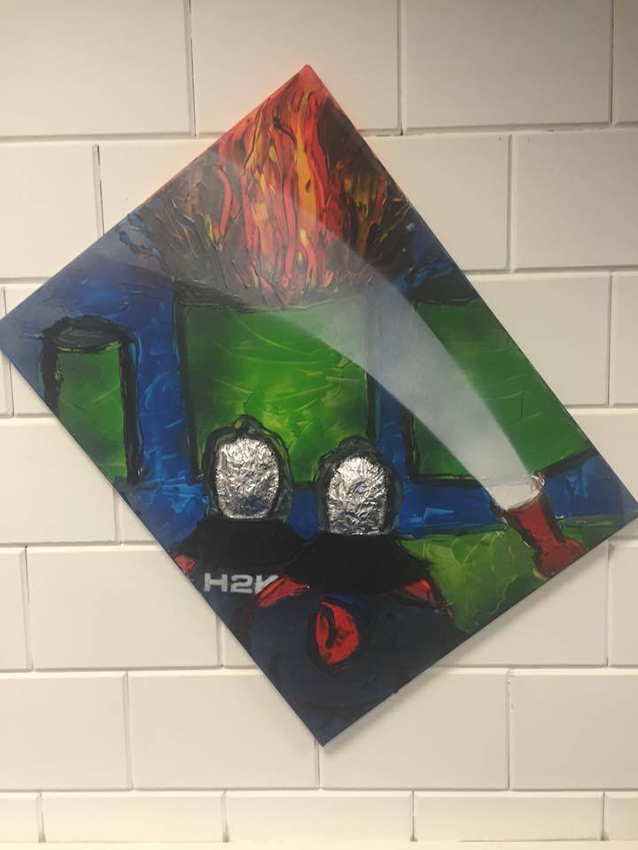 Gemaakt in opdracht van haar (de voorste) voor de verjaardag van haar vriend (de achterste).