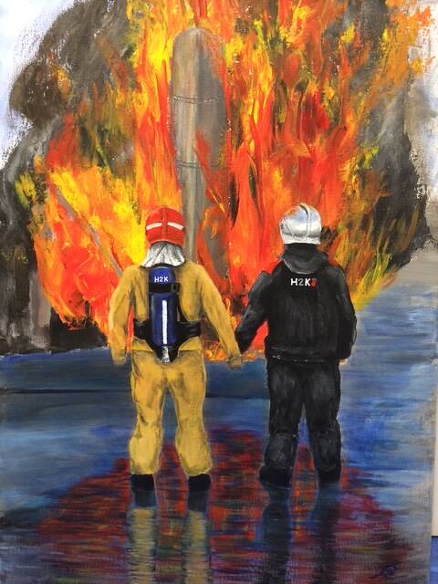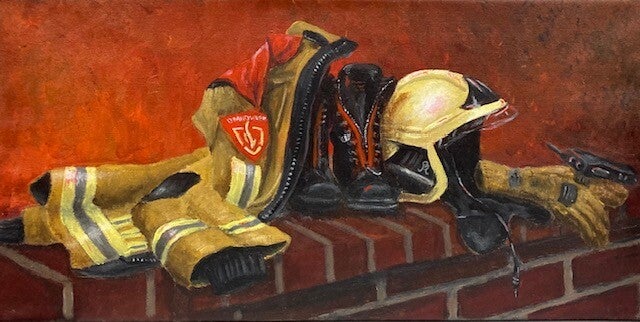 Opdracht van zijn zoon voor zijn afscheid (FLO) bij de brandweer.