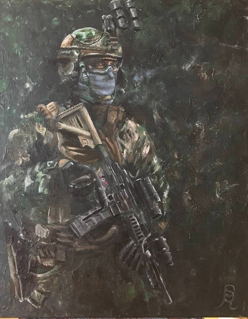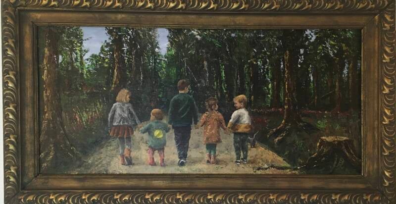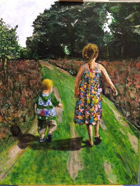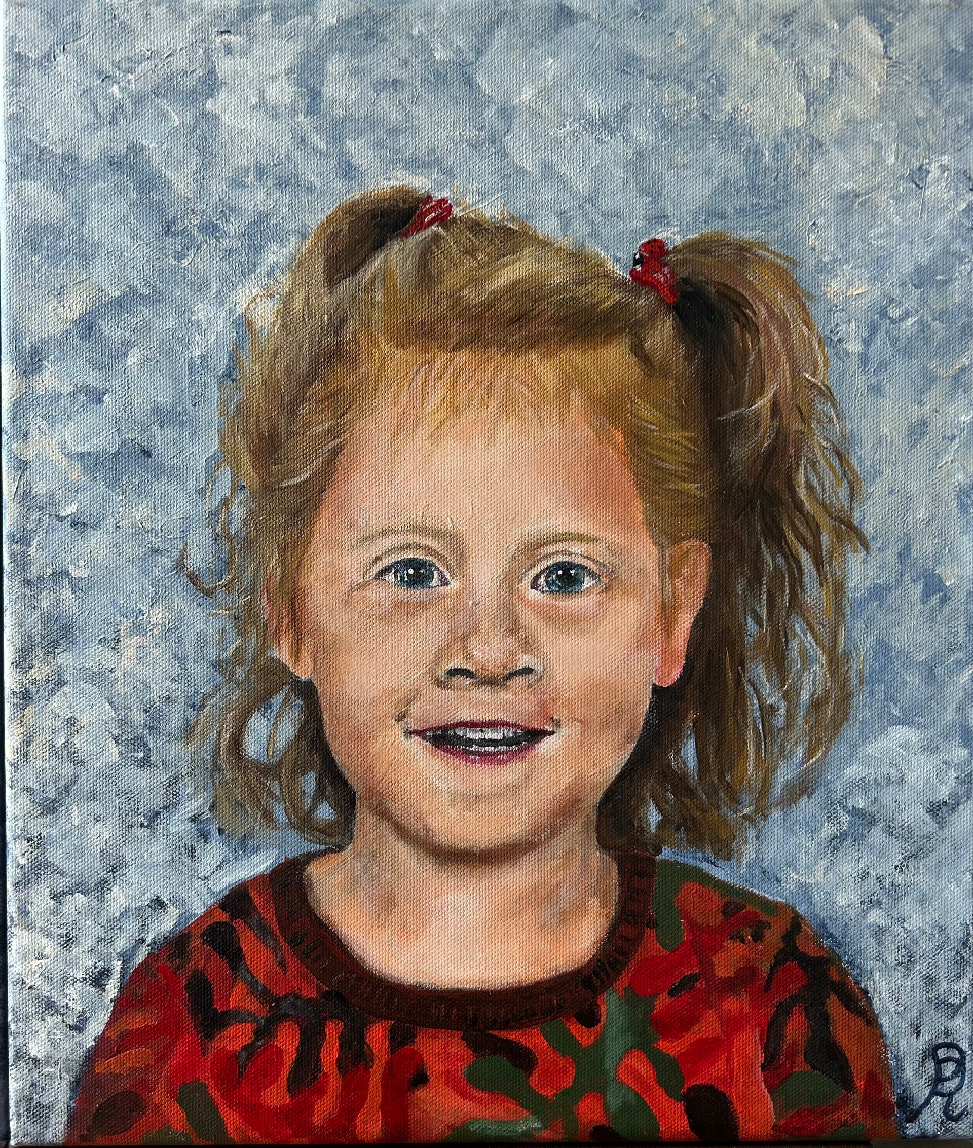 Kinderen van een collega van mij. De kinderen zijn met een kwast gedaan, de rest met een paletmes.