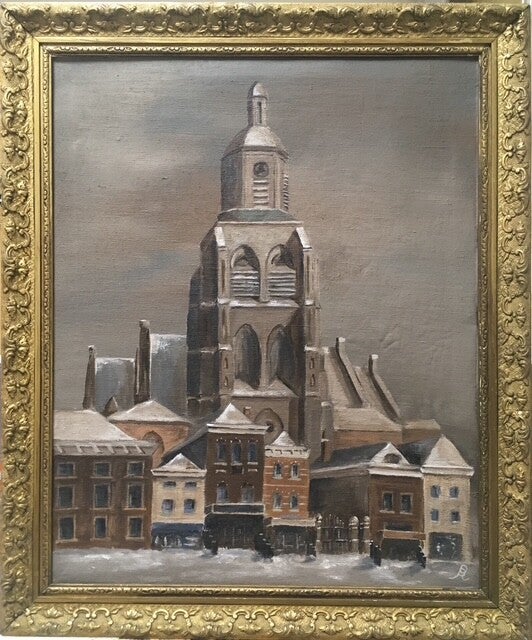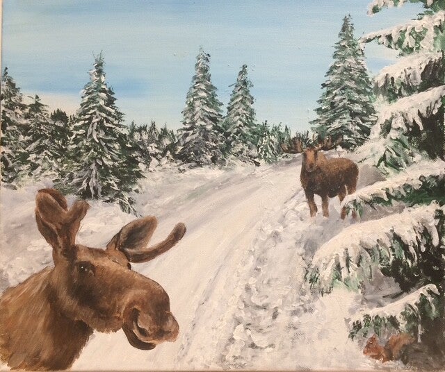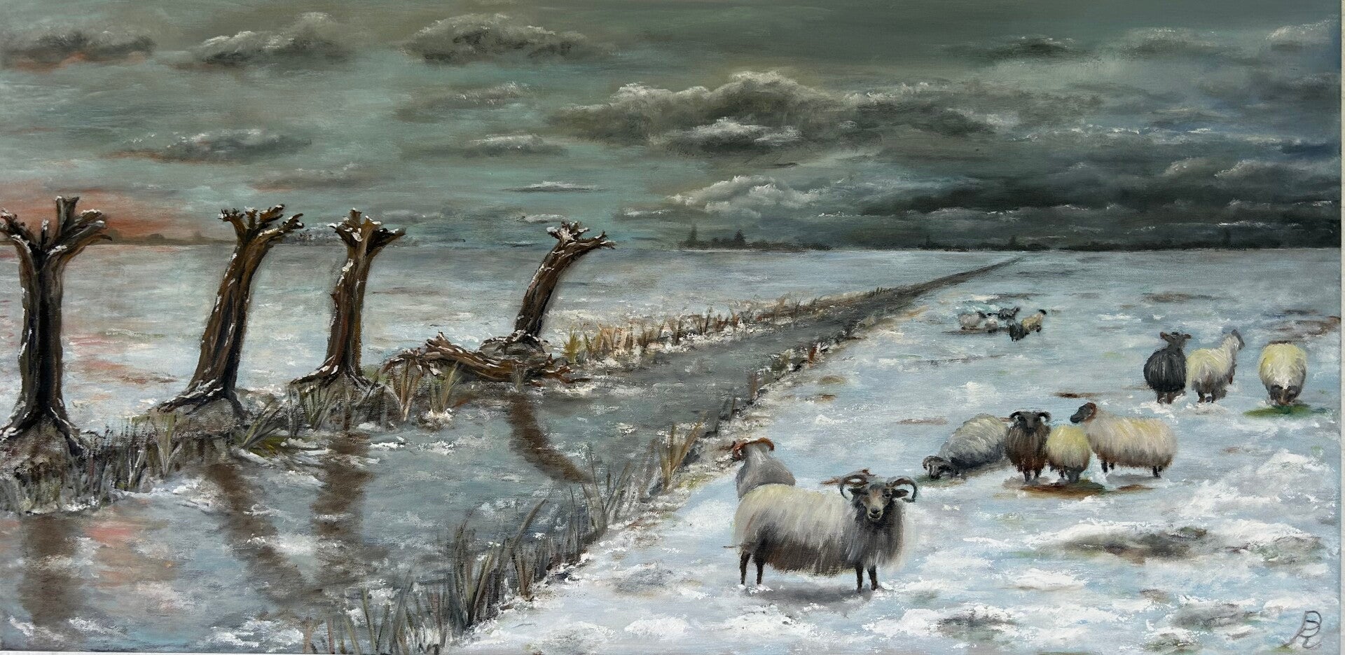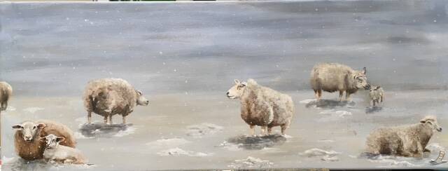 Geschonken aan onze oude overburen die graag een schilderij wilde van schapen in de sneeuw.