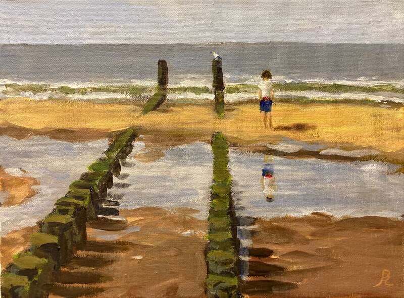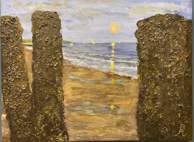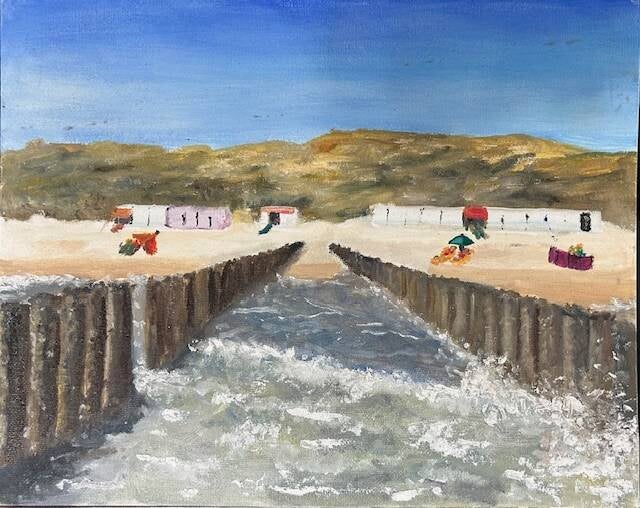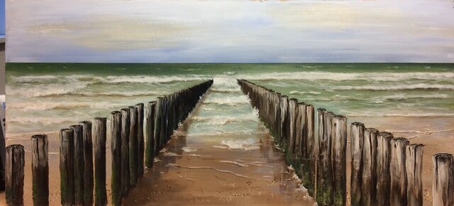 Geschilderd ter plaatsen op het Domburgse strand, het water wat ik gebruikte voor de acryl is water uit de zee.