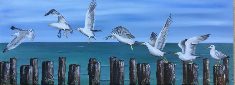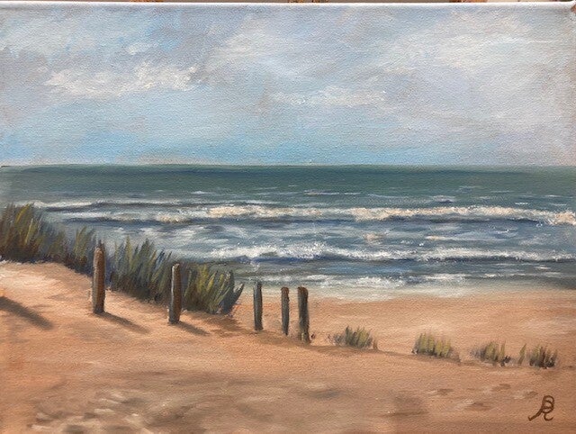 Geschilderd ter plaatsen op het Domburgse strand, het water wat ik gebruikte voor de acryl was water uit de zee.